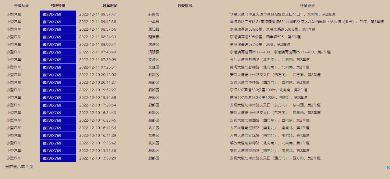 默认只出5页,这5页内容跑了什么路,取决于他平时开车的频率,比如每天都开车的话,5页内容可能仅仅是他几天的记录。如果频率不高,5页的内容可能覆盖了几个月的活动轨迹。车辆轨迹只记录在道路的行驶情况,车辆停靠地点无法直接通过车辆轨迹得出,需要你结合车主的行为逻辑,自己推断。